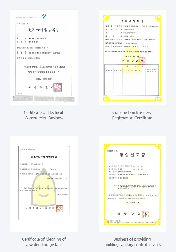- Maintenance and air conditioning of water and sewage supply/drainage facilities/collection/septic tank/gas/fire fighting/disaster facilities maintenance